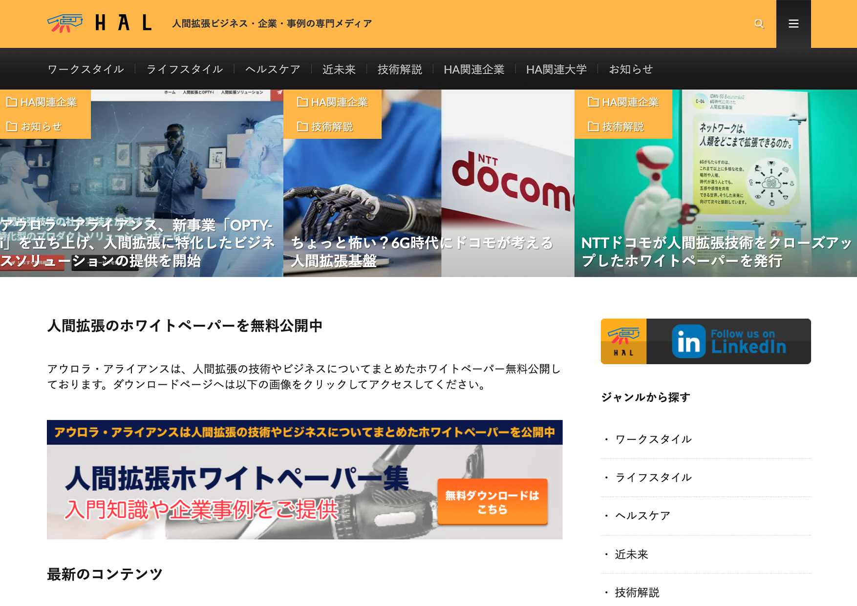 国内初の人間拡張技術にフォーカスしたメディアサイトを立ち上げ、運営しています。「人と機械の融合」と「生み出すことと繋ぐ未来」をイメージしたブランドロゴも作成。メディア内では記事の作成やインタビュー、マーケティング施策も行なっています。SNSではLinkedInも発信しています。